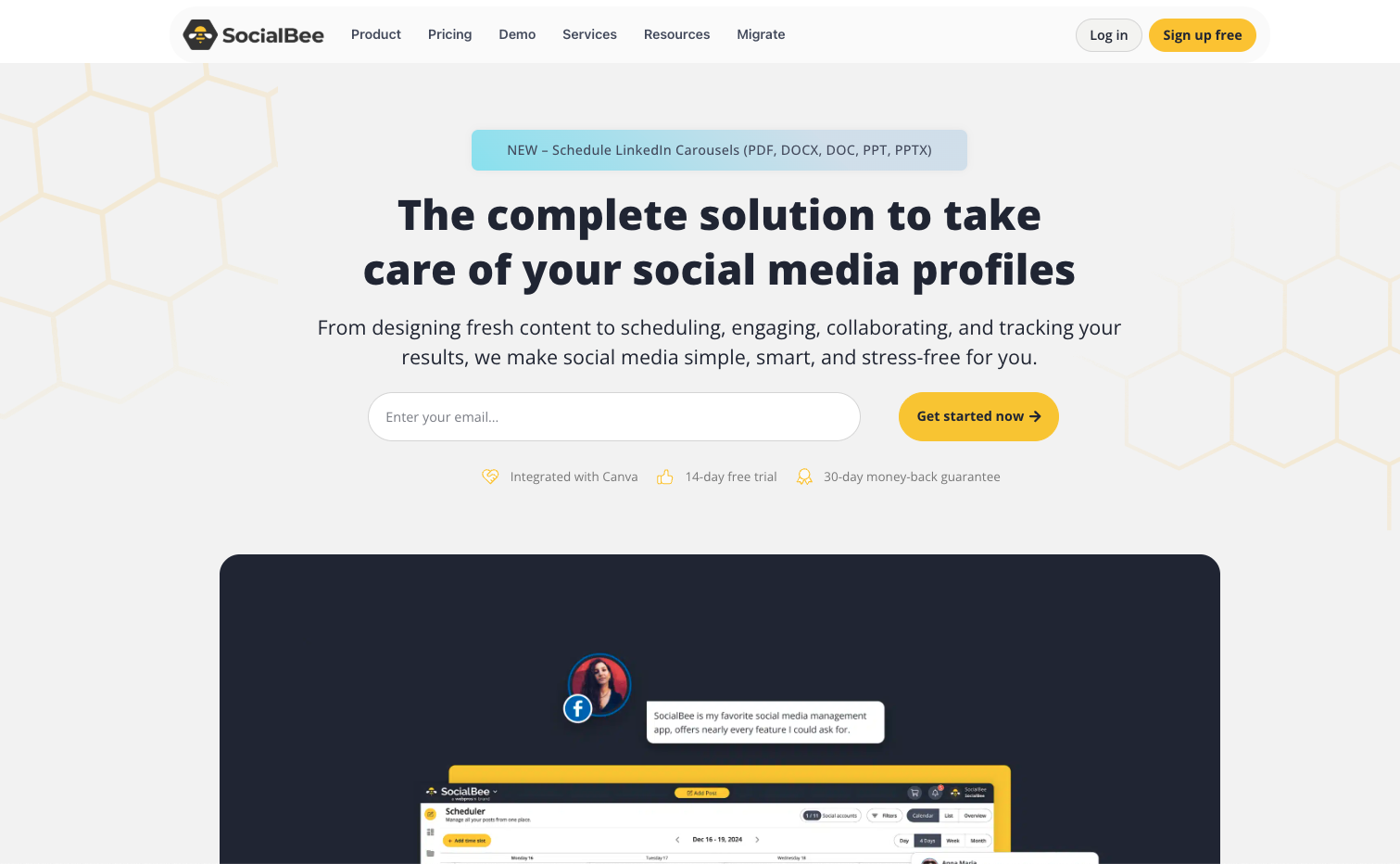 | SocialBee | AI content creation & visual calendar | No free plan | Paid from $29/month |